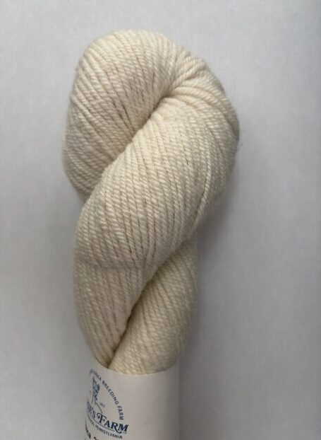 If you’ve ever visited Silkie’s Farm, there’s a good chance you’ve met Fernando. He is the greeter in the male field. He is a beautiful white male that carries a dense, soft fiber fleece with a long staple. His bag at shearing time overflows with gorgeous flber. We look forward to preprocessing it every year. These skeins are white and can be easily dyed.