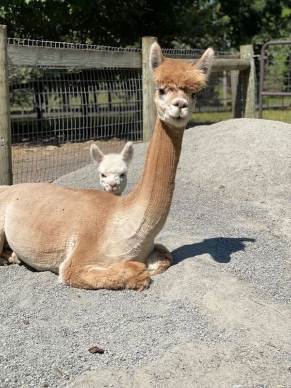 On a cold, blustery April Fools Day, we were excited to meet Sunspot. She came to us as an almost 2 year old to enter our breeding program. She is a friendly, beautiful light fawn female. She became besties with our Merengue and they truly look like twin daughters of different mothers. She is currently bred to our King of Dreams and all set for a spring 2023 delivery. This will be a beautiful baby!!